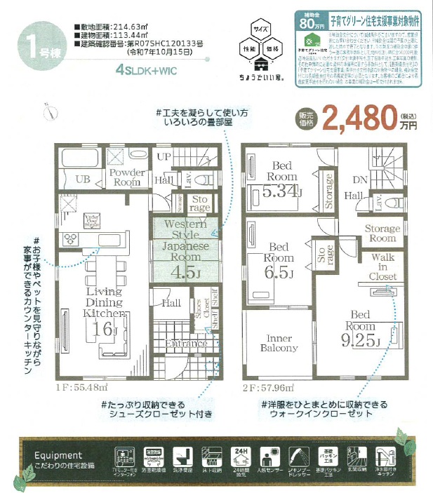2階の主寝室はWICがついています✨廊下の収納も季節ものをしまうのに助かりますね☺