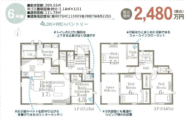 6号棟 2480万円(税込) 4LDK+WIC+パントリー