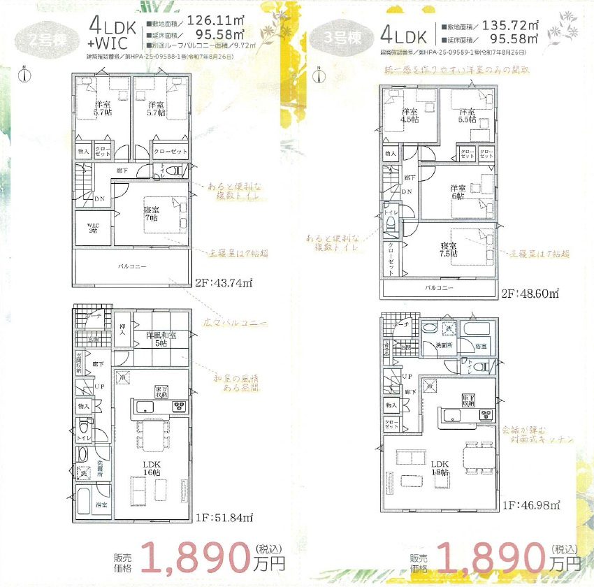 2号棟 1890万円 4LDK+WIC