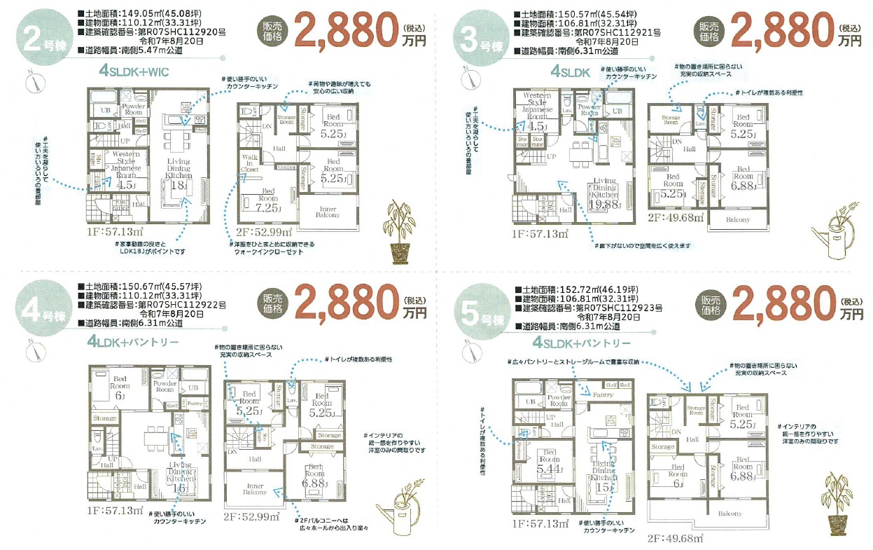 5号棟 2880万円(税込) 4SLDK+パントリー
