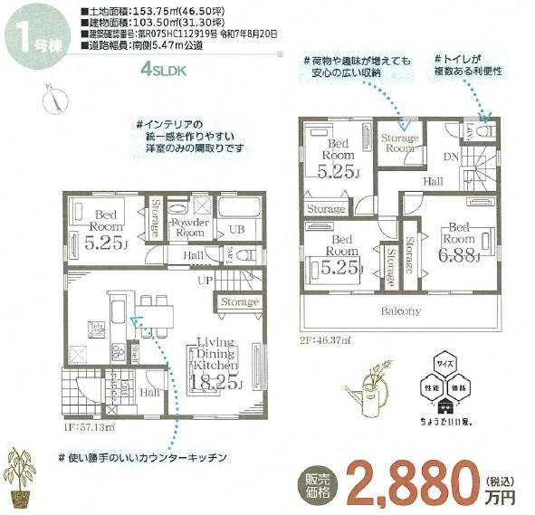 1号棟 2880万円(税込) 4SLDK
