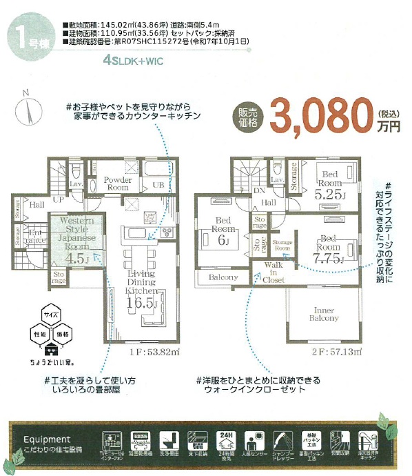1号棟 3080万円(税込) 4SLDK+WIC
