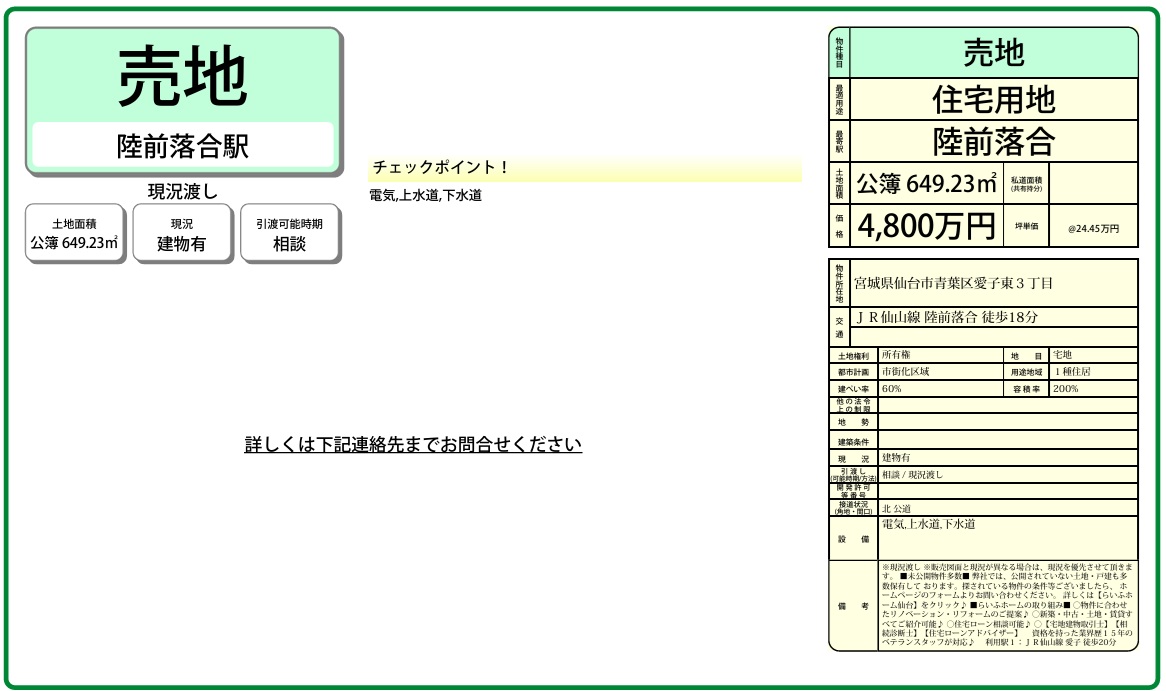 【新着物件情報!】仙台市青葉区愛子東3丁目 ☆彡売却依頼いただきました!