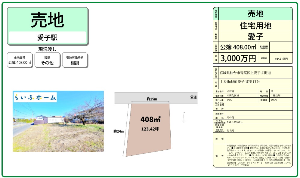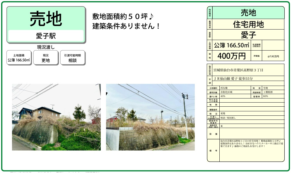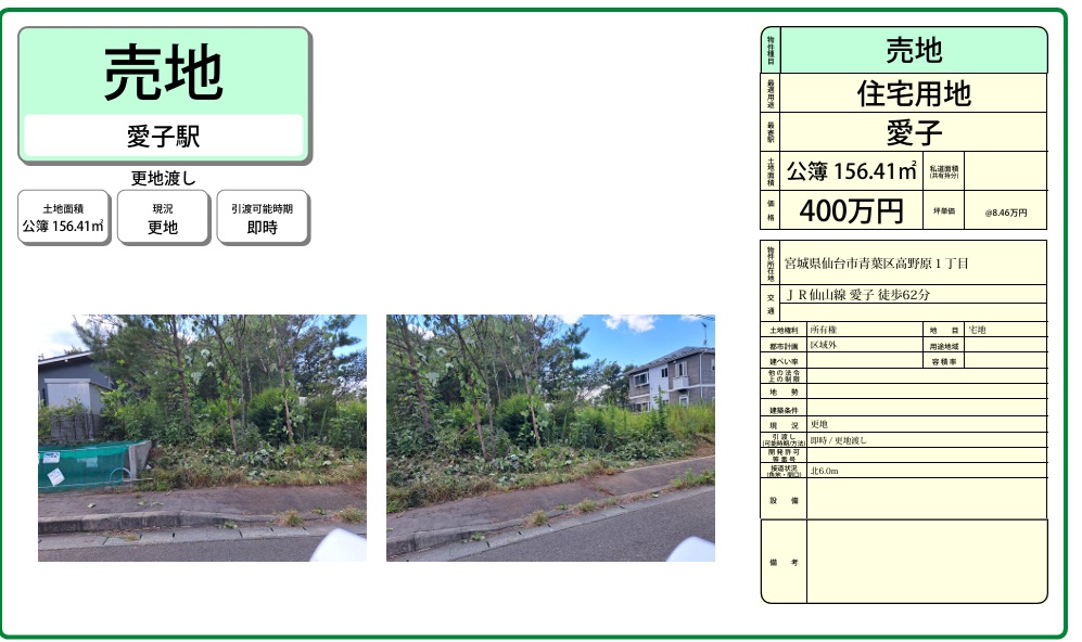 🌳今回は400万円~2000万円台/愛子周辺の住宅用地をご紹介しました☺