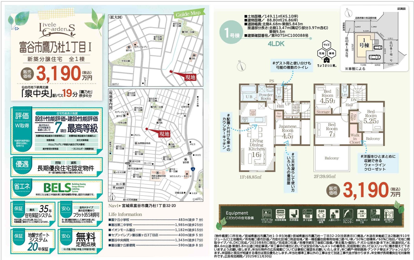 富谷市【落ち着いた住宅街☆彡新築戸建て17件★】[令和7年11月版]