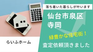 【査定依頼】 ・仙台市泉区将監8丁目 戸建 土地面積:140㎡ 建物面積:100㎡ 「徒歩5分で、学校もスーパーも。家族の“ちょうどいい”がそろってます。」 泉区将監の住宅地、緑 […]